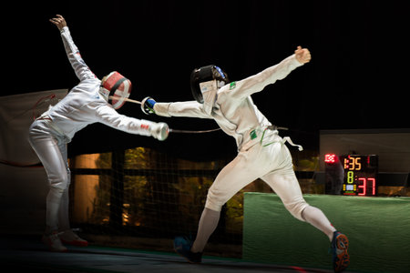 fencing duels in Olympic competition matches professional photography