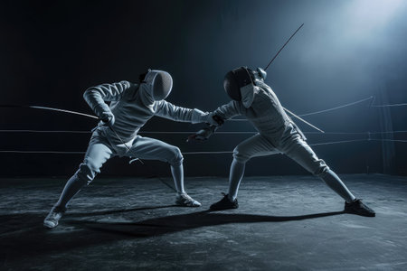 Intense fencing duel between skilled opponents Ai generated
