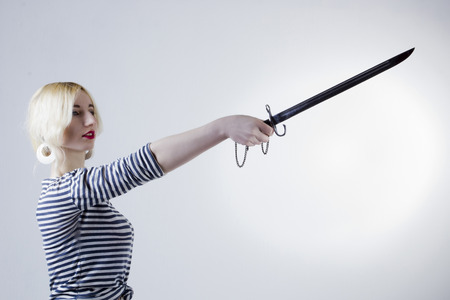 Blonde girl with a sword in her hands