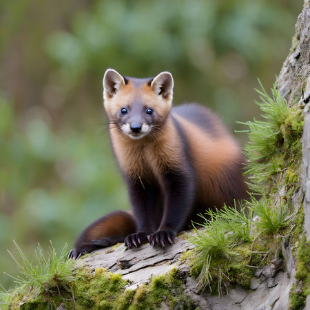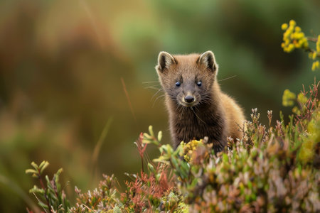 Curious Pine Marten Peeking Through Wild Vegetation