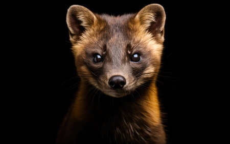 close up portrait of ferret animal over dark background