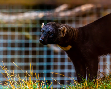 A close-up of a market-ready mink on a fur farm, known for producing high-value pelts
