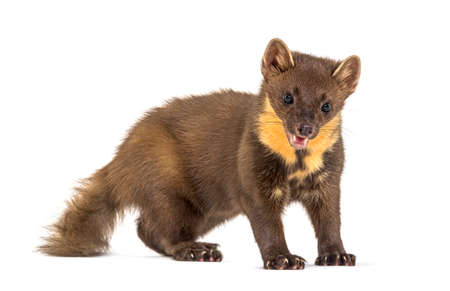Pine marten standing, isolated on white