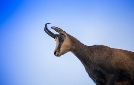 wildlife chamois goat on clear blue sky