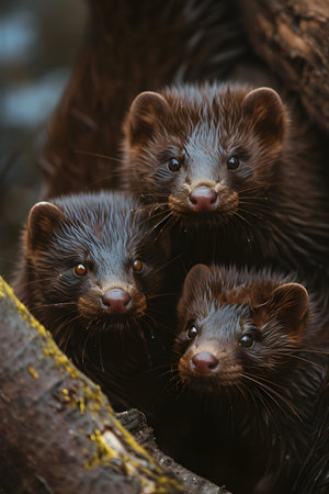 Close up of mustelids in the forest