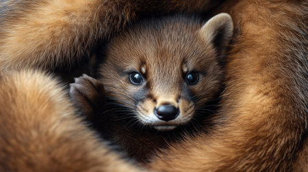 A close-up of a mink raised for its fur, with soft pelts ready for the fashion industry