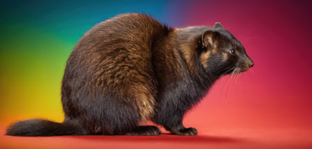 Portrait of a domestic rat on a multicolored background.