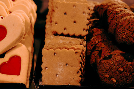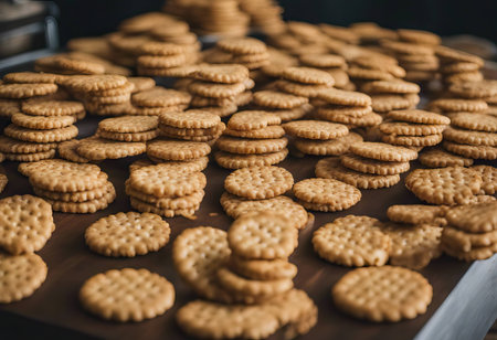 A close-up shot showing the intricate details and tempting texture of delicious cookies.