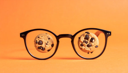 A pair of eyeglasses offers a new perspective, focusing solely on the delicious temptation of chocolate chip cookies.