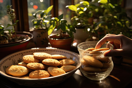 Serving cinnamon cookies on a plate, generative AI