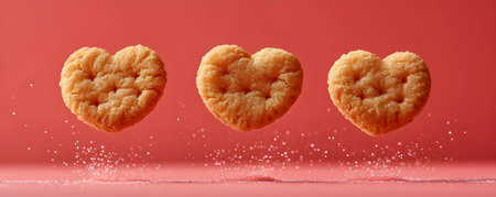 Tasty festive heart shaped pink sugar cookies for Valentine's Day on red background