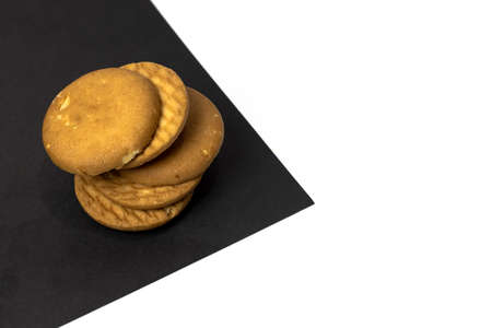 Cream biscuit on black background.sweet concept