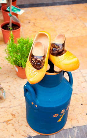 traditional Dutch shoes in park Keukenhof - largest flower garden in Europe, Holland.
