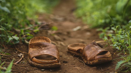 Comfortable old sandals, perfect for casual strolls and leisurely walks, providing reliable support and ease with each step taken.AI Generated