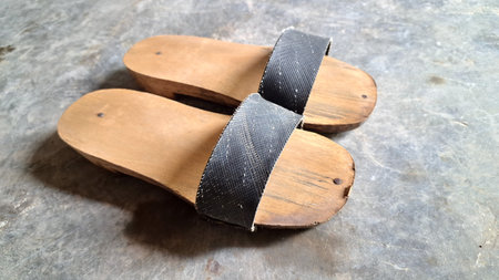 Classic Indonesian Bakiak Wooden Slippers Traditional Handmade Footwear from Java with Rubber Straps, Symbolizing Local Heritage and Simplicity