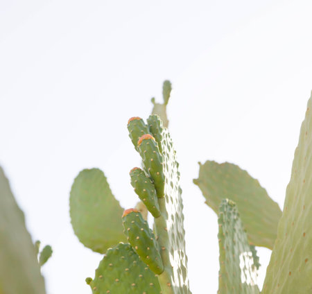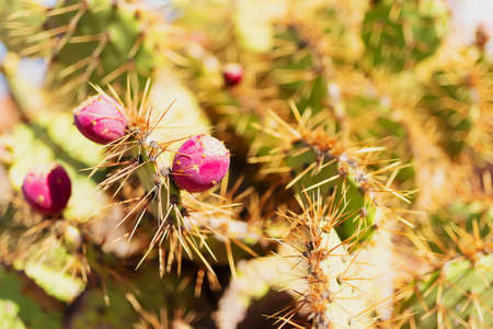 Spiky Cactus landscape, field. Garden of flower.Cactus planted in a botanical garden, desert valley.beavertail cactus