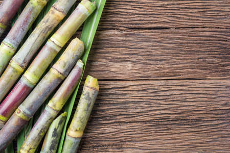 Close up sugarcane on wood background close up.