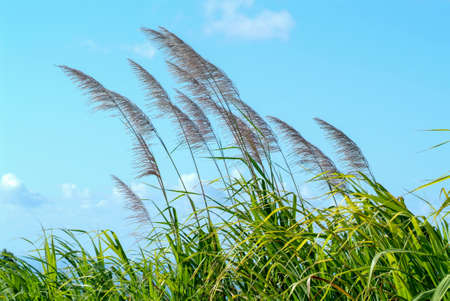 Flowers of sugar cane in the wind at La Reunion Island, France