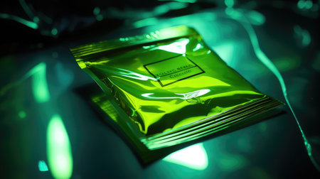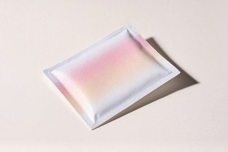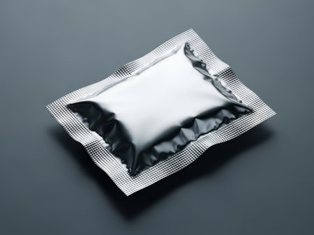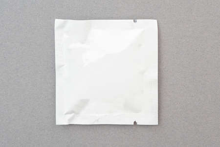 Square foil packet isolated on white background