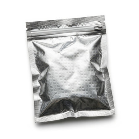 Zippered foil pouch isolated on white background
