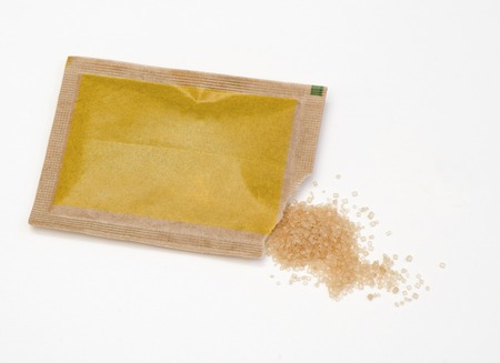 Sugar sachets on blue background.