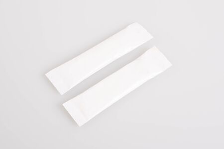 two real stick pack for products of food and cosmetic industry on white background use for granulated powder products and Coffee
