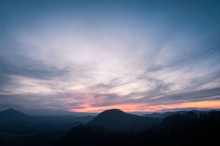 Sunset over the Saxon Switzerland National Park in Saxony, Germany