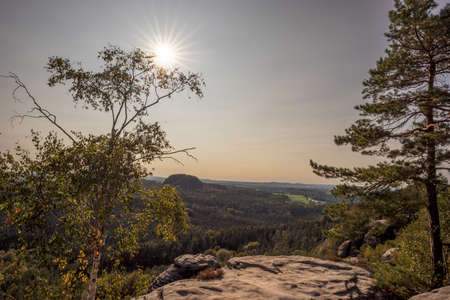 View of the landscape and old picture at sunset in National Park Bohemian Switzerland, Czech Republic