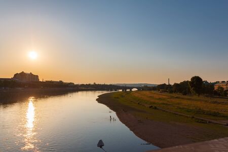 View from the Augustus Bridge in Dresden to the Marienbruecke and the Elbe