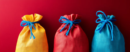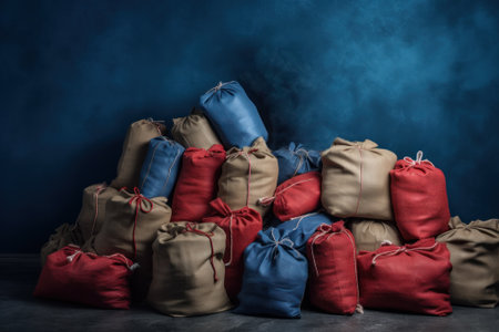 Dive into a world of mystery with these assorted colorful bags against a moody blue backdrop. Perfect for creative projects or thematic designs