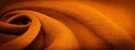 close up orange linen cloth background