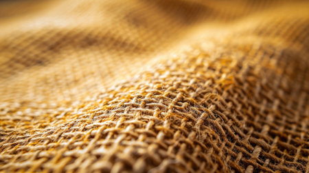 This close-up photograph showcases a textured brown burlap fabric, highlighting the natural fibers and warm tones against a dark background. Ideal for rustic-themed projects.