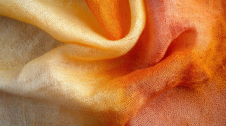 This unique burlap fabric displays a beautiful gradient of warm yellow to orange colors, highlighting its rustic texture. Perfect for crafting, decorating, or artistic projects.