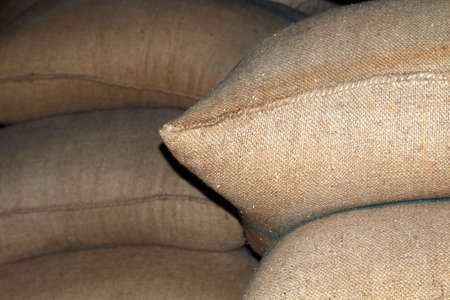 Bags of green coffee closeup. Coffee for export.