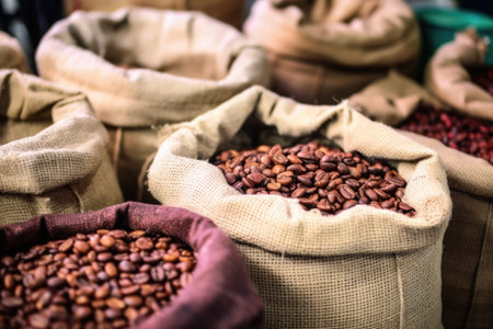 coffee beans in mesh bags, coffee production, AI Generative
