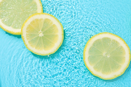 Fresh lemon slices submerged in water