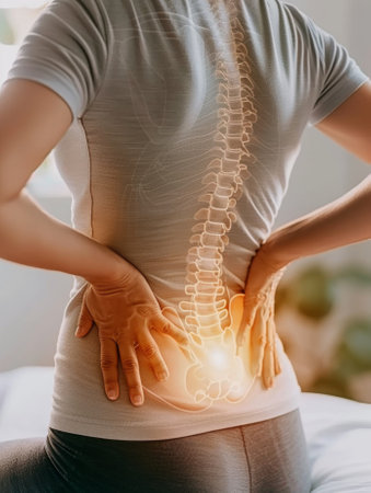 Person with lower back pain, capturing the discomfort and challenges faced by individuals experiencing lumbar discomfort, highlighting the need for attention and care in managing spinal health.