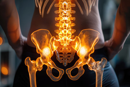 Visual representation of human skeletal structure with focus on spine and pelvis