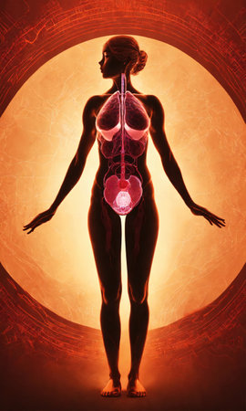 An x-ray image capturing the back of a man with a visible skeleton model, An X-ray view focused on the human abdomen, AI Generated