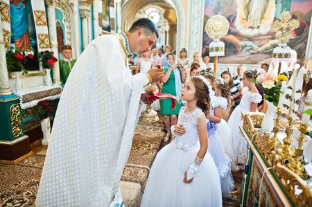 Mukyluntsi , Ukraine - 26 june, 2016: First holy communion.