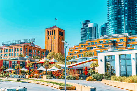 San Francisco, California, USA - September 09, 2018: View of downtown from the Embarcadero street, San Francisco.
