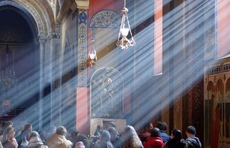 MOSCOW - MARCH 10: Russian orthodox church interior at the morning on March 10, 2013 in Moscow
