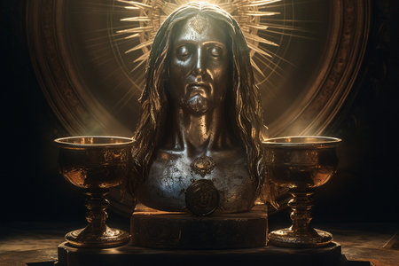 A stunning close-up image of a Jesus figure adorned with a crown of thorns, capturing intricate details and emotional expression, perfect for religious themes.