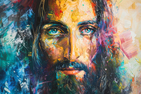 Portrait of Jesus Christ, close-up. Colorful background.