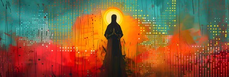 A Jesus in front of an abstract background, AI