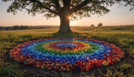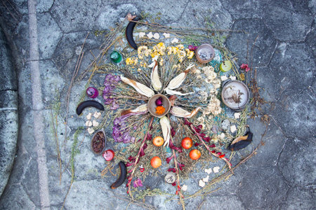 Madala with flowers and fruits, spiritual ceremony of earth.