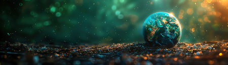 A stunning image of a glowing Earth surrounded by sparkling orbs on a textured surface, capturing an enchanting cosmic scene. The light and reflections create a mystical atmosphere. Generated A.I.