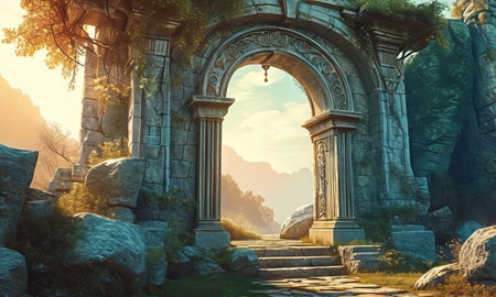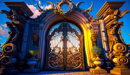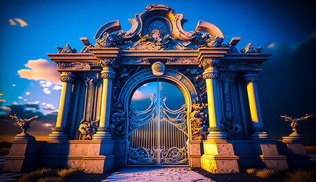 Gate that is surrounded by pillars and pillars. Generative AI.