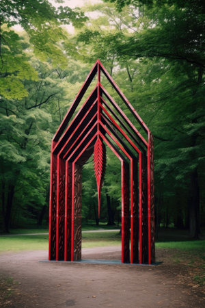 arrow sculptures as modern art installations in a park, created with generative ai