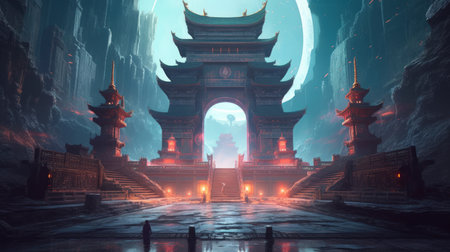 Otherworldly Alien round gates fantasy. Universe planet. Generate Ai